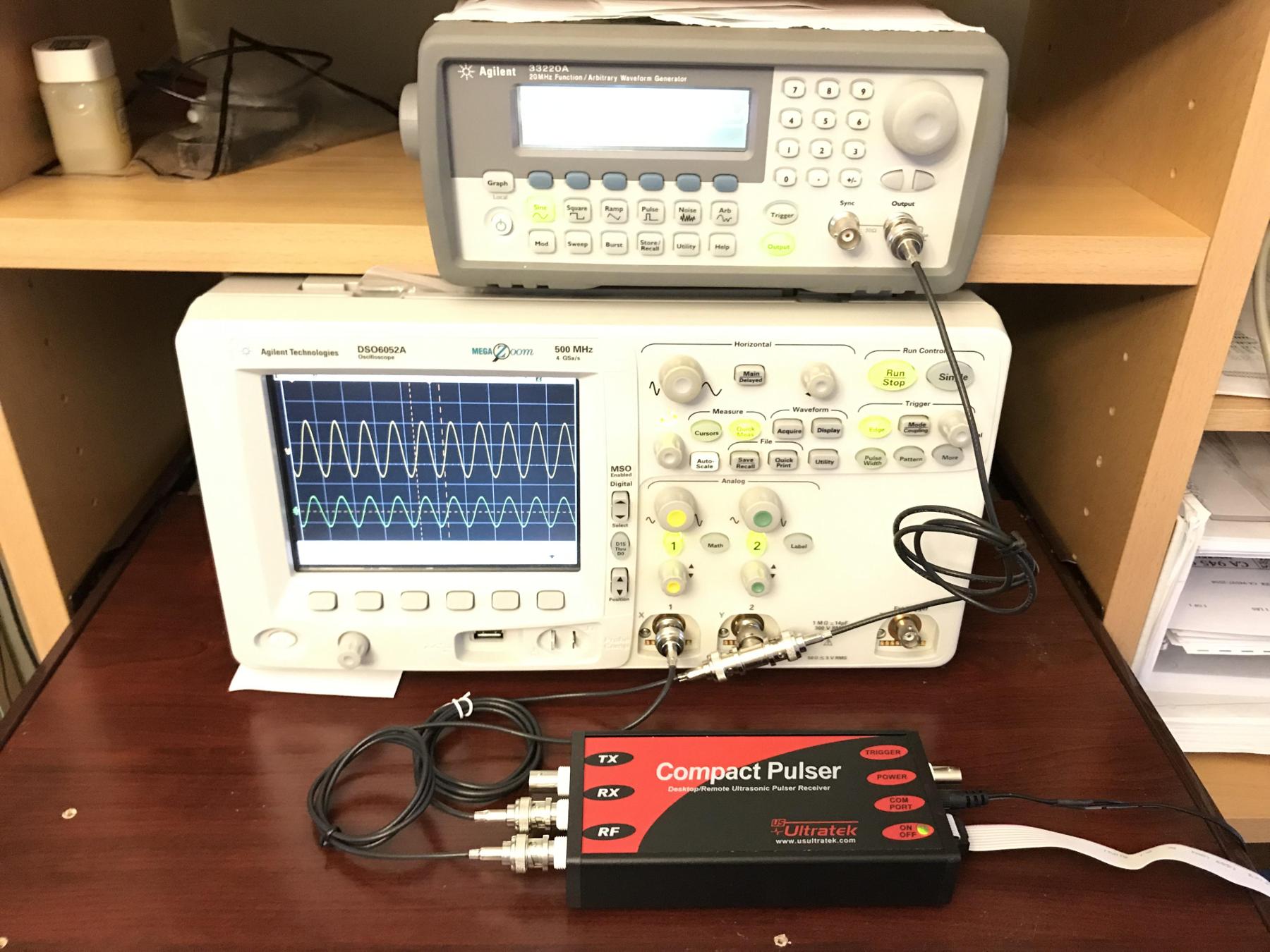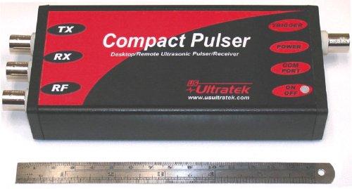 Compact Pulser is an ultrasonic pulser/receiver that can be used as a remote pulser or a standard desktop pulser/receiver. The Compact Pulser transmits a high voltage pulse with a user specified pulse voltage and width when triggered by an external trigger signal or by the internal PRF timer. The receiver on the Compact Pulser then processes the received signal through the amplifier and the low and high filters.
